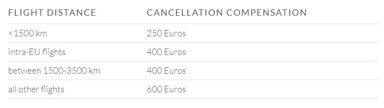 For flight cancellations where alternative transportation is scheduled to arrive at least one hour later, passengers are also entitled to compensation.
